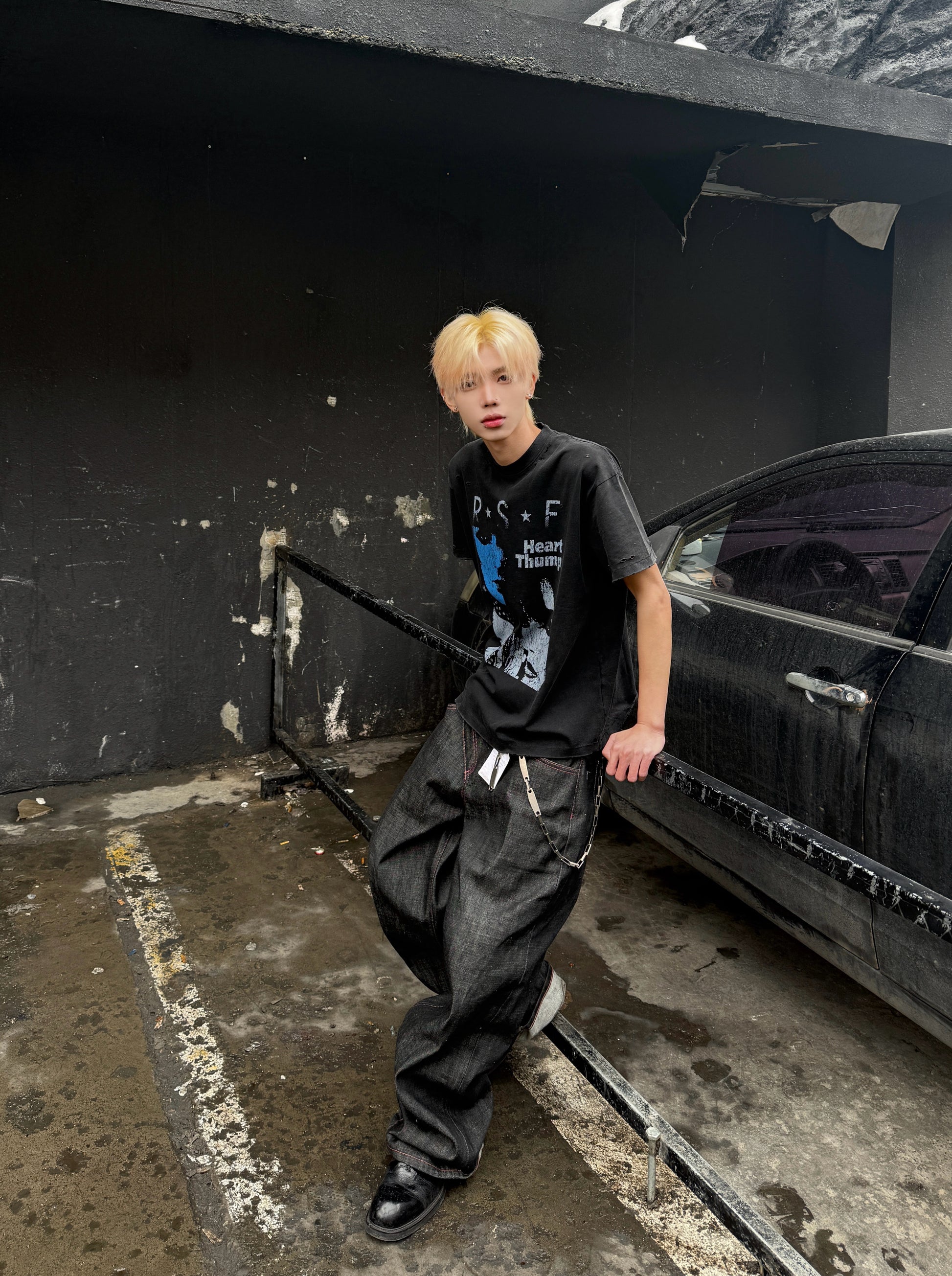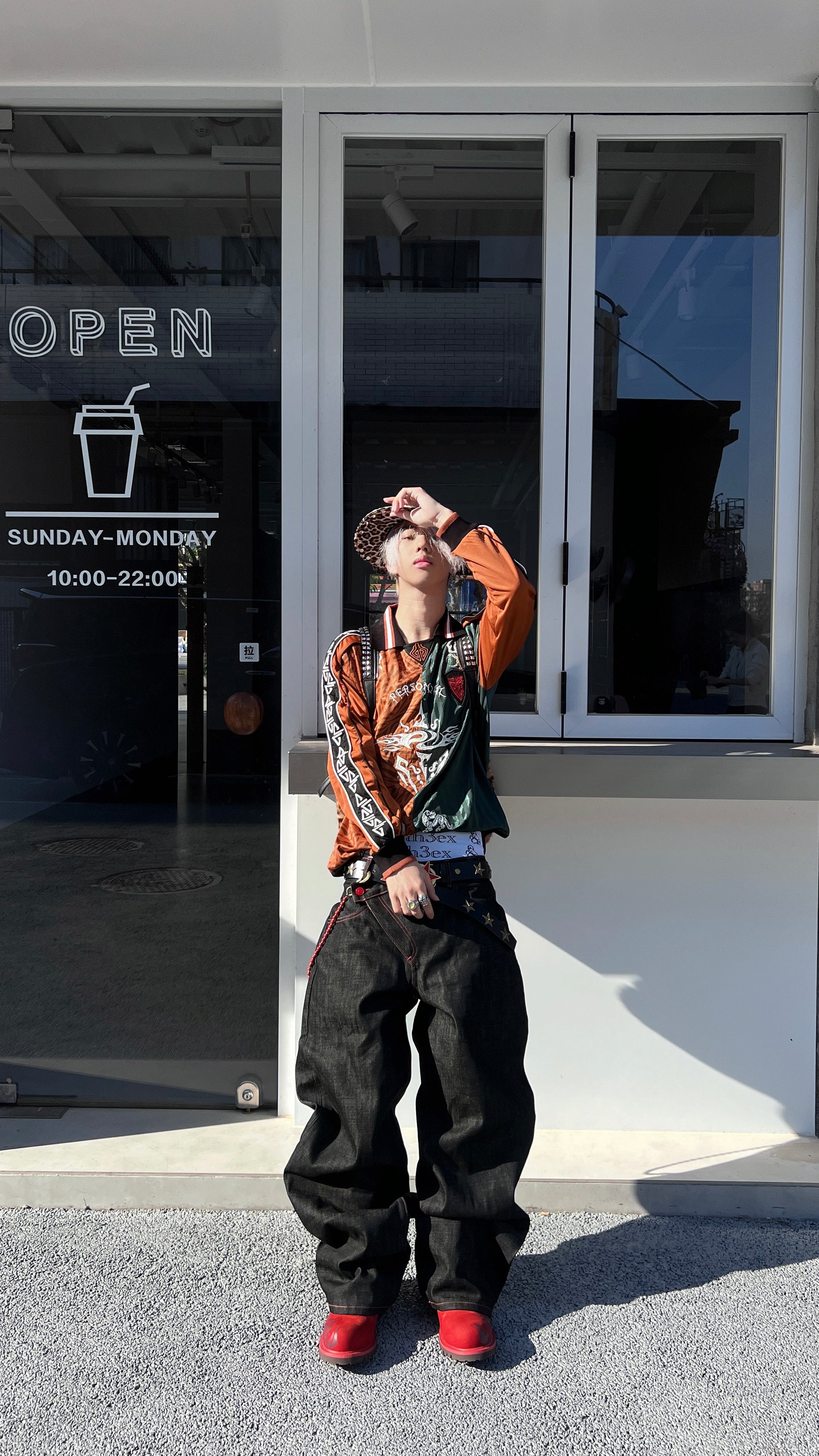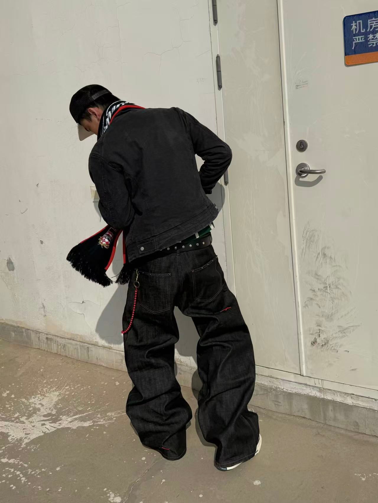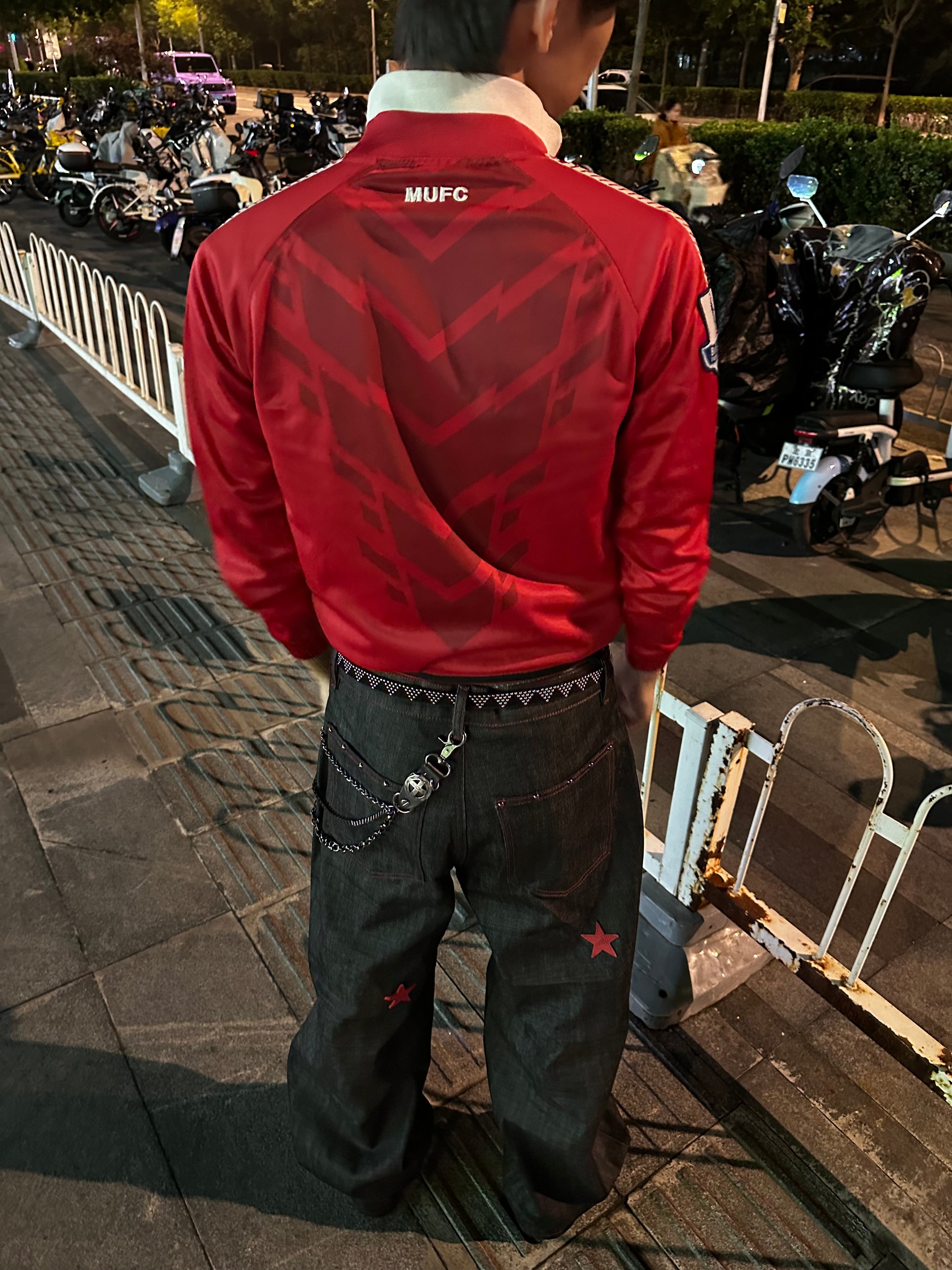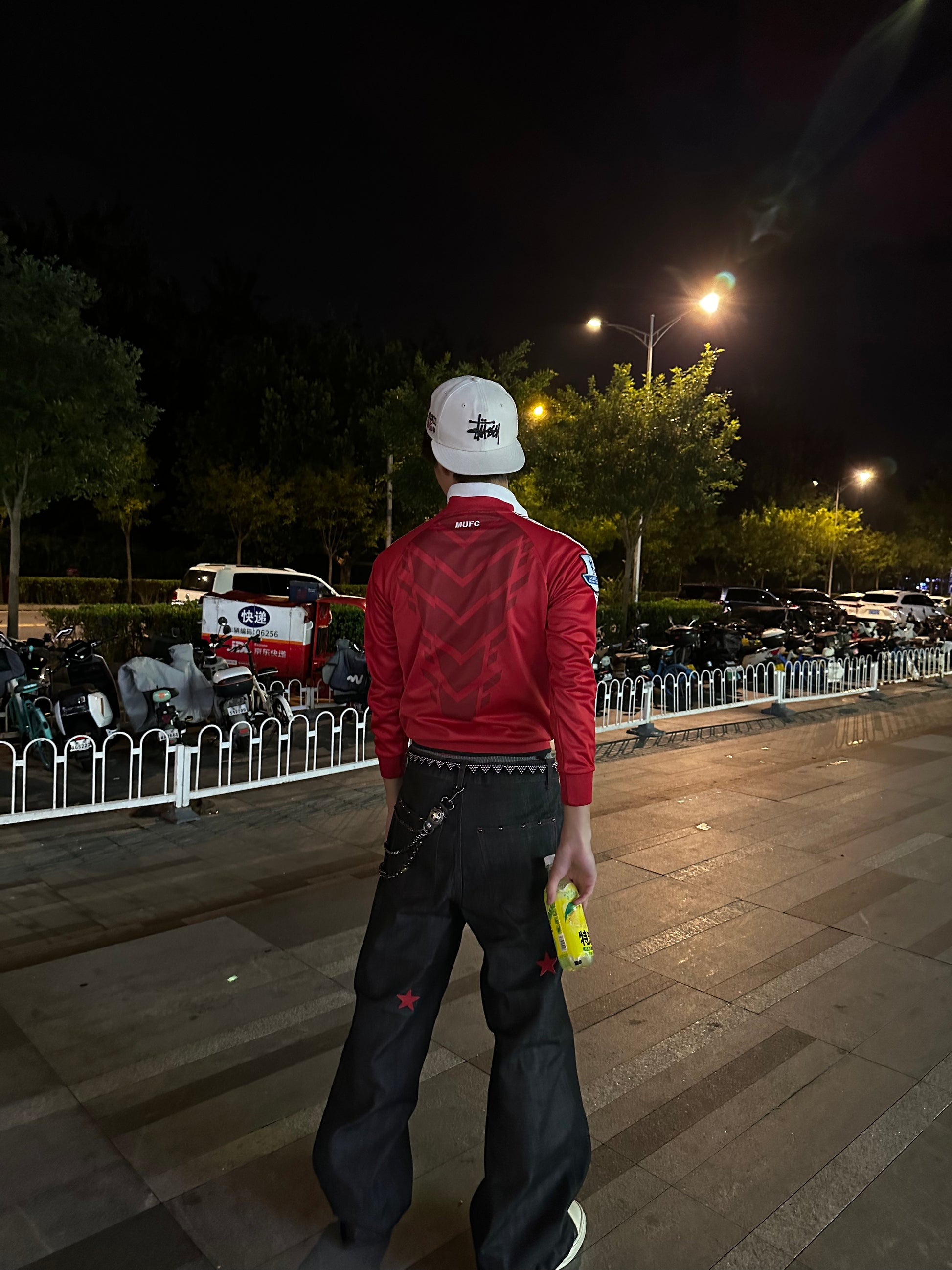 A versatile pair of natural-color jeans for daily commutes, featuring 14oz independently developed and custom-made red ear narrow-cut pure cotton jeans that are crisp and stylish. The black straight cut is decorated with a red pu leather five-pointed star and a handwritten 4earless